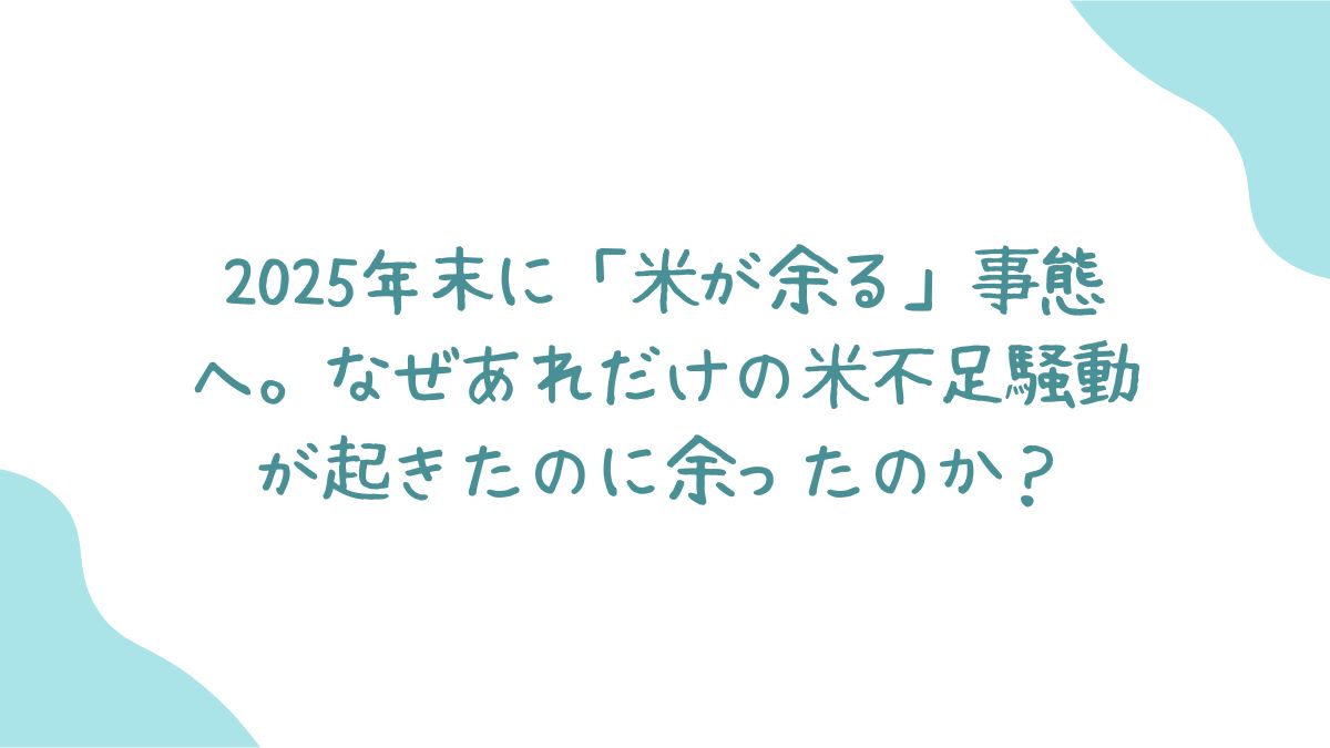 2024年の高値を受け、農家側で生産意欲が高まったことや、天候の影響などで2025年産の作況が改善したことも供給増につながっています。供給が増えたタイミングで需要が冷え込んだため、ギャップが広がり「余剰」となりました。