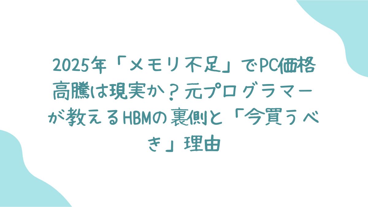 2025年のPC市場は、「AIブームによるHBMへの生産シフト」と「Windows 10終了特需」というダブルパンチにより、かつてない高騰のリスクに晒されています。