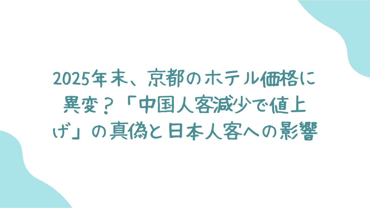 - 値上げの正体:欧米客向けの高級ホテルや、人手不足による供給制限が原因。中国人減少が直接の原因ではない。