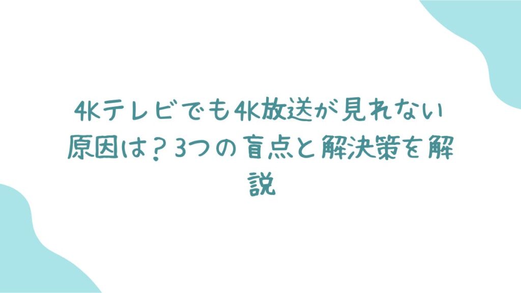 この記事を読み終える頃には、あなたの悩みの原因が明確になり、本来の美しい4K映像を楽しむための道筋が見えているはずです。