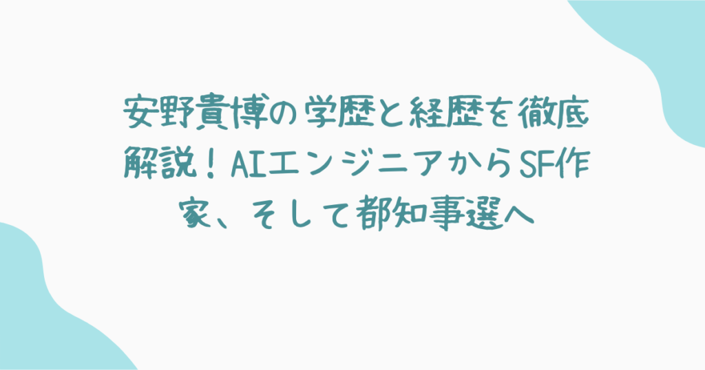 安野貴博さんは、AIエンジニア、起業家、SF作家として多岐にわたるキャリアを持つ人物です。