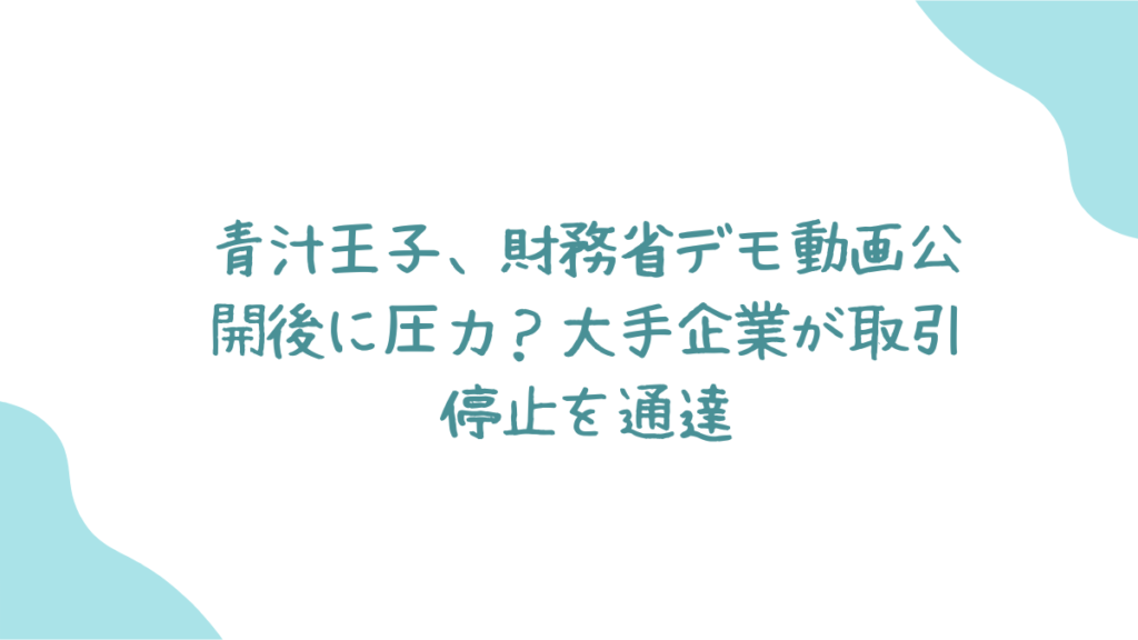 ここでは、青汁王子が取材した財務省デモの内容、彼が訴えた主張、そしてその後に起きた「取引停止」の実態について詳しく見ていきます。