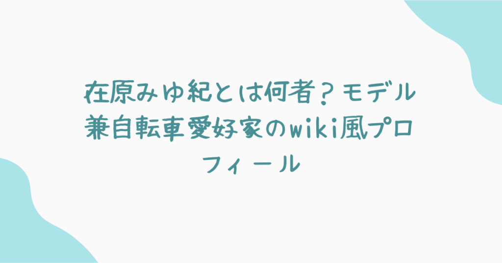 モデルとしての活動はもちろん、趣味や好みまで、在原みゆ紀さんの全てをこの記事で紹介します。彼女の魅力的な世界観をお楽しみください。