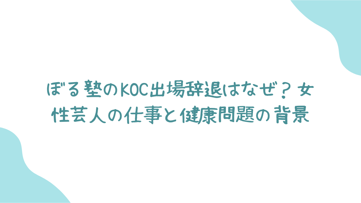 人気お笑いカルテット「ぼる塾」が、お笑い界の檜舞台であるキングオブコント2025の準々決勝を辞退したというニュースが大きな話題となりました。