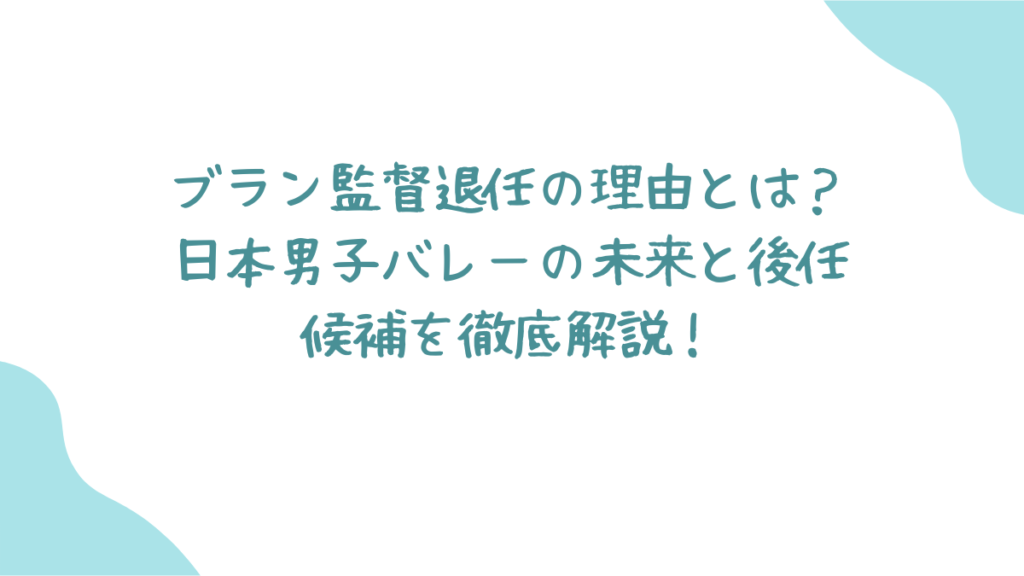 ブラン監督の退任が決まり、多くのファンが驚きと寂しさを感じていますね。でも、その理由や日本バレーへの影響はどうなのでしょうか?詳しく見ていきましょう!