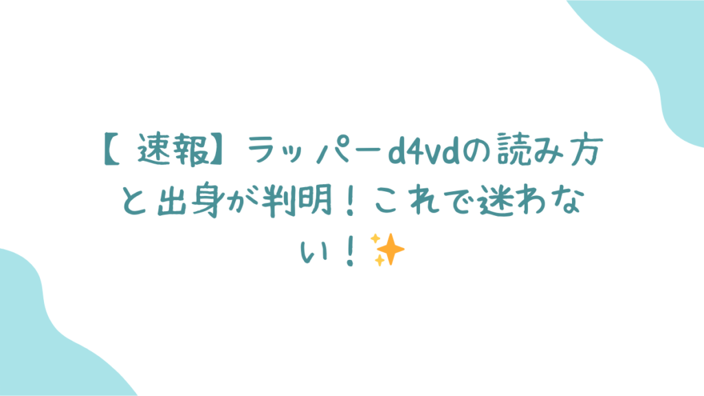 この記事では、d4vdの読み方や出身のプロフィールについて、最新情報を分かりやすくまとめてみたので、さっそくチェックしていきましょう!✨