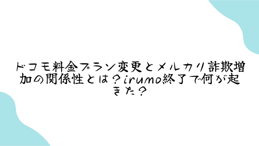最近、メルカリでの詐欺被害が急増しているってご存知ですか? 私も心理学を専攻したフリーライターの水野恵理ですが、実はこの詐欺増加の背景に、ドコモの料金プラン変更、特に「irumo」の終了が関係しているのではないかと考えています。