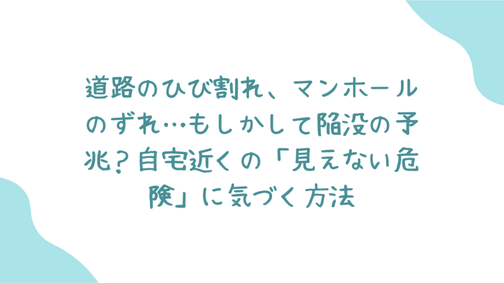 これらは、マンホールの下の土砂が流されたり、下水道管に異常があったりするサインの可能性があります。