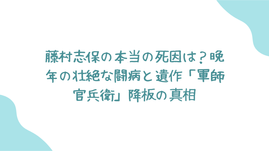 藤村さんの晩年を語る上で、大きな出来事となったのが、2014年のNHK大河ドラマ「軍師官兵衛」のナレーション降板でした。その理由は「背骨の圧迫骨折」。医師からは「絶対安静」と診断され、収録の継続が困難になったとのことです。