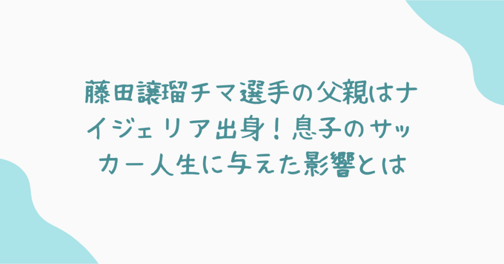 藤田譲瑠チマ選手の成長と活躍の背景には、ナイジェリア人の父親の存在が大きく影響しています。