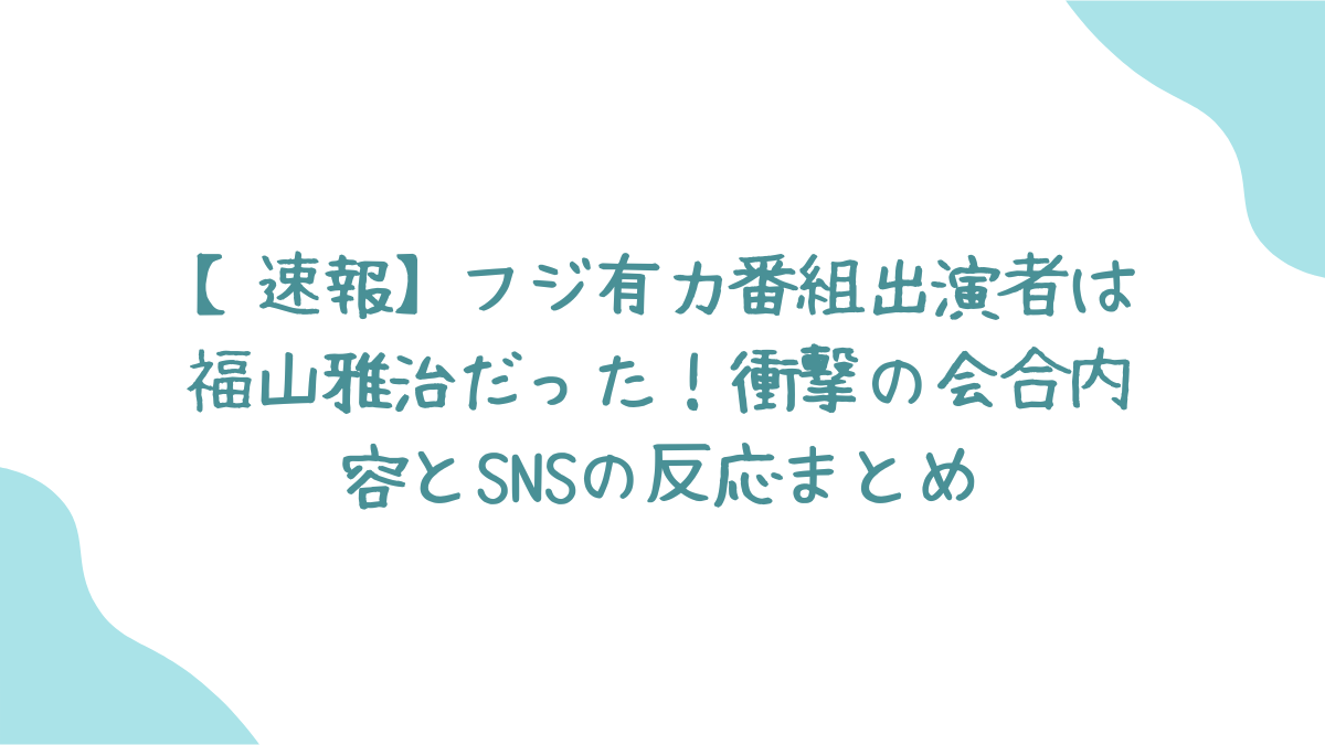 今回は、フジテレビの「有力番組出演者」が福山雅治さんだったという衝撃のニュースについて、経緯や内容、世間の反応をまとめてみました!いやー、本当にびっくりだよね…。😳