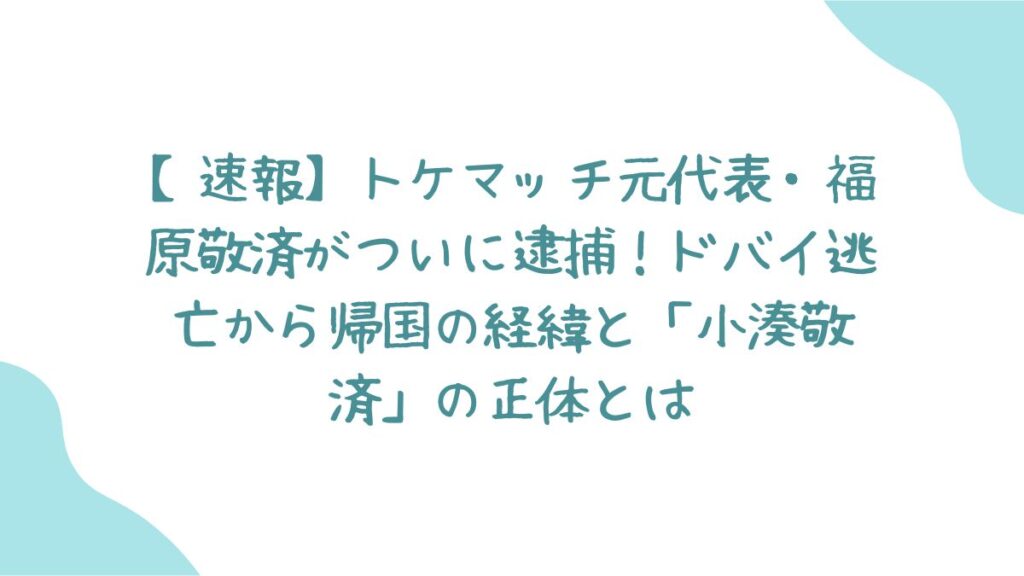 今回の逮捕報道において、一部メディアでは「小湊敬済(こみなと たかずみ)」という名前も報じられています。本名なのか、あるいはビジネス上の偽名として使い分けていたのかについては、今後の捜査での解明が待たれますが、複数の名義を使用していた可能性があります。