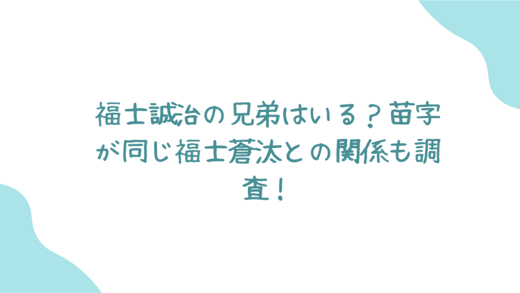 福士誠治さんと福士蒼汰さんが「兄弟では?」と噂される理由の一つは、やはり「福士」という名字が同じだからでしょう。