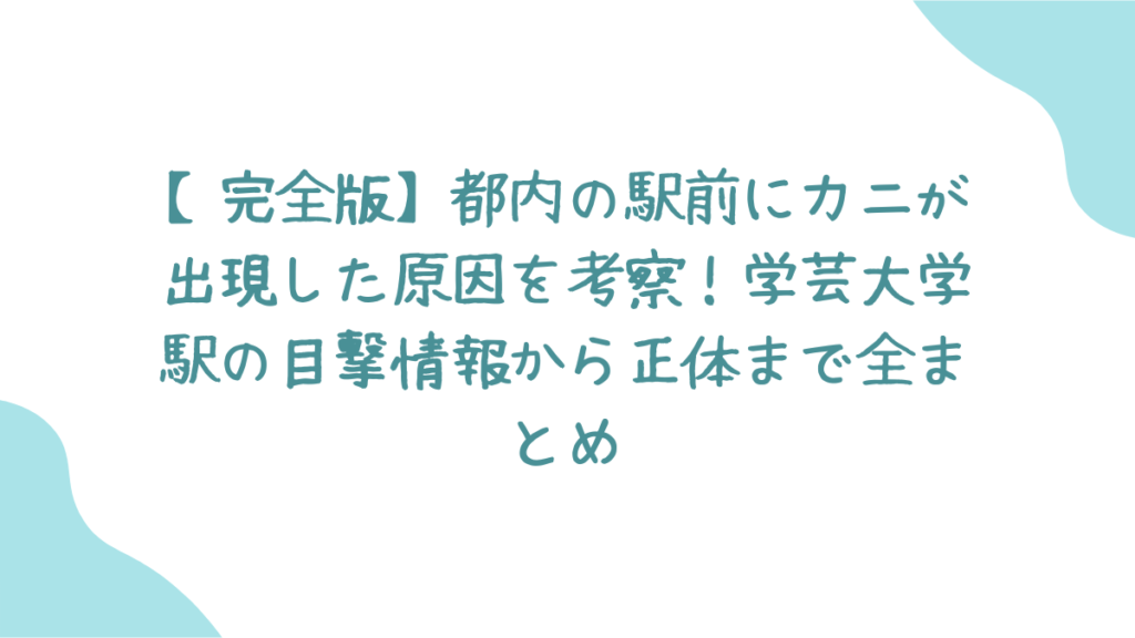 今回はこの「学芸大学駅のカニ出没事件」について、断片的な情報を整理し、その真相と背景にあるものを冷静に分析・考察していきます。