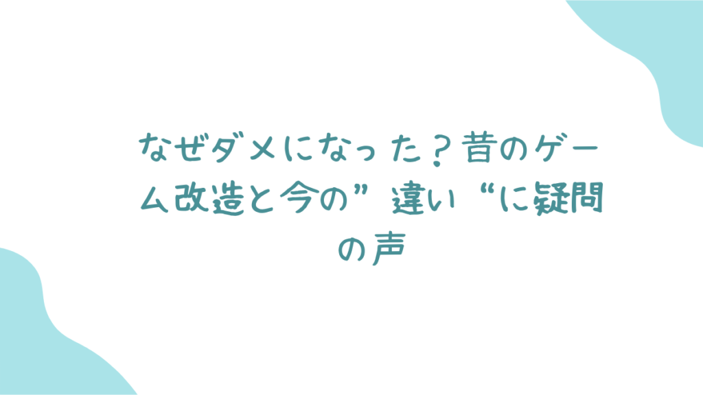 この記事を読めば、なぜ昔はOK(に見えた)ゲーム改造が今はNGなのか、その背景にある時代の変化やルールの違いがスッキリ分かります。ゲーム好きも、そうでない人も、ちょっと一緒に考えてみませんか?