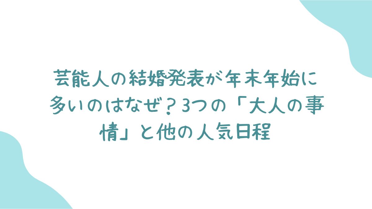 芸能人の年末年始の結婚ラッシュには、明確な理由があります。