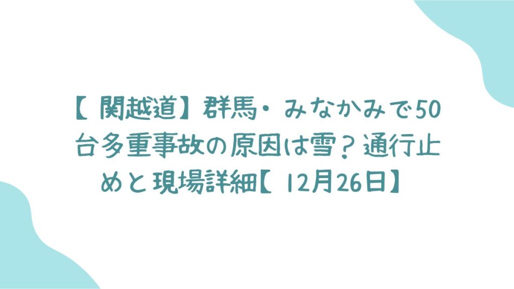 2025年12月26日夜、群馬県みなかみ町の関越自動車道で、車両50台以上が巻き込まれる大規模な多重事故が発生しました。「現場はどうなっているのか?」「なぜこれほど大きな事故になったのか?」と、不安に感じている方も多いことでしょう。
