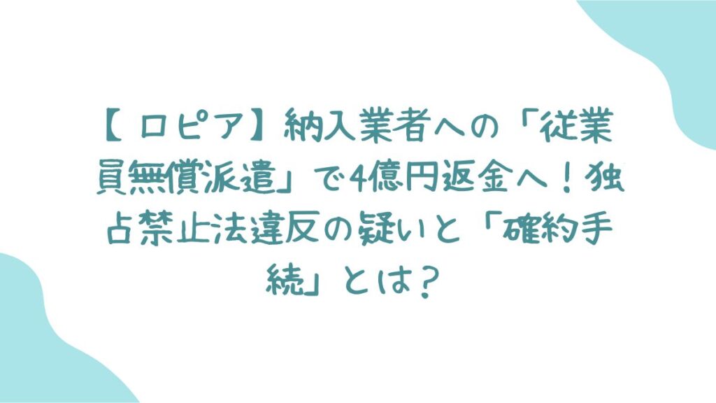 「独占禁止法違反なの?」「結局どうなったの?」という疑問に対し、今回適用された「確約手続(かくやくてつづき)」という仕組みや、具体的な被害規模(4億円超!)について、事実関係を分かりやすくまとめました。