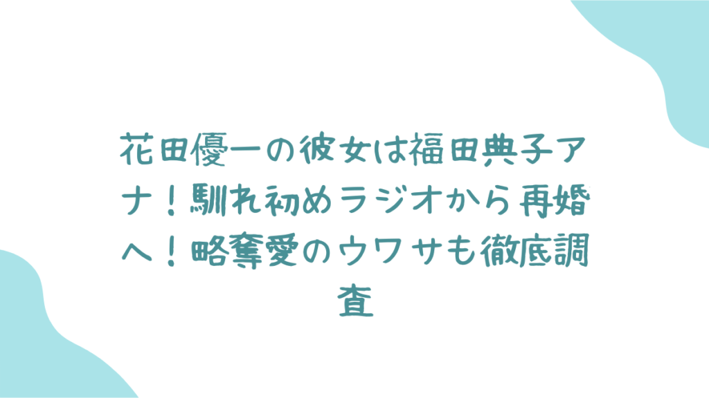 キャー!みなさん、ついに判明しましたね!🎉 ずーっと「お相手は誰なの!?」って気になっていた、靴職人・花田優一さんの新しい恋人、ついにベールを脱ぎました😍 なんと、元テレビ東京の人気アナウンサー、福田典子さんだったんです!ビックリしましたよね!?今回はこのビッグカップルのニュースについて、馴れ初めから気になるウワサまで、全部チェックしちゃいます💖