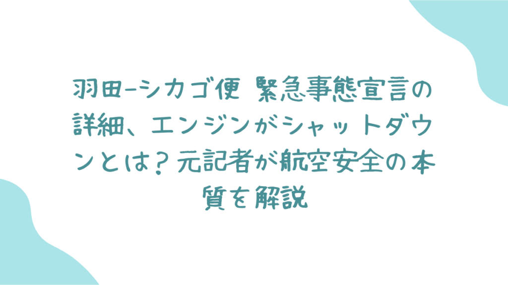 この記事では、羽田-シカゴ便で起きた緊急事態宣言の詳細を追いながら、エンジンがシャットダウンとは一体何なのか、そしてその背景にある航空業界の徹底された安全思想の本質を冷静に解き明かしていきます。