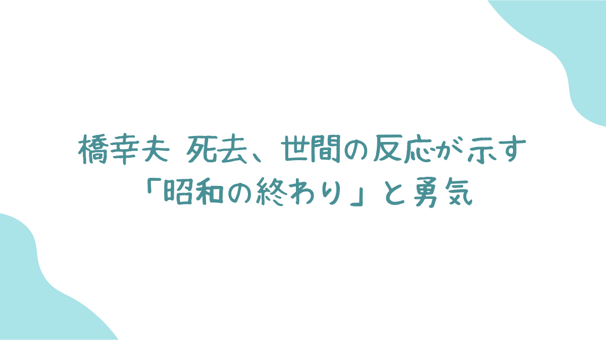 この記事では、元新聞記者としての視点から、橋幸夫さんの死去に対する世間の反応を深く読み解き、そこに映し出される日本社会の変容、そして一人の人間が最期に示した尊厳とは何だったのかを考察していきます。