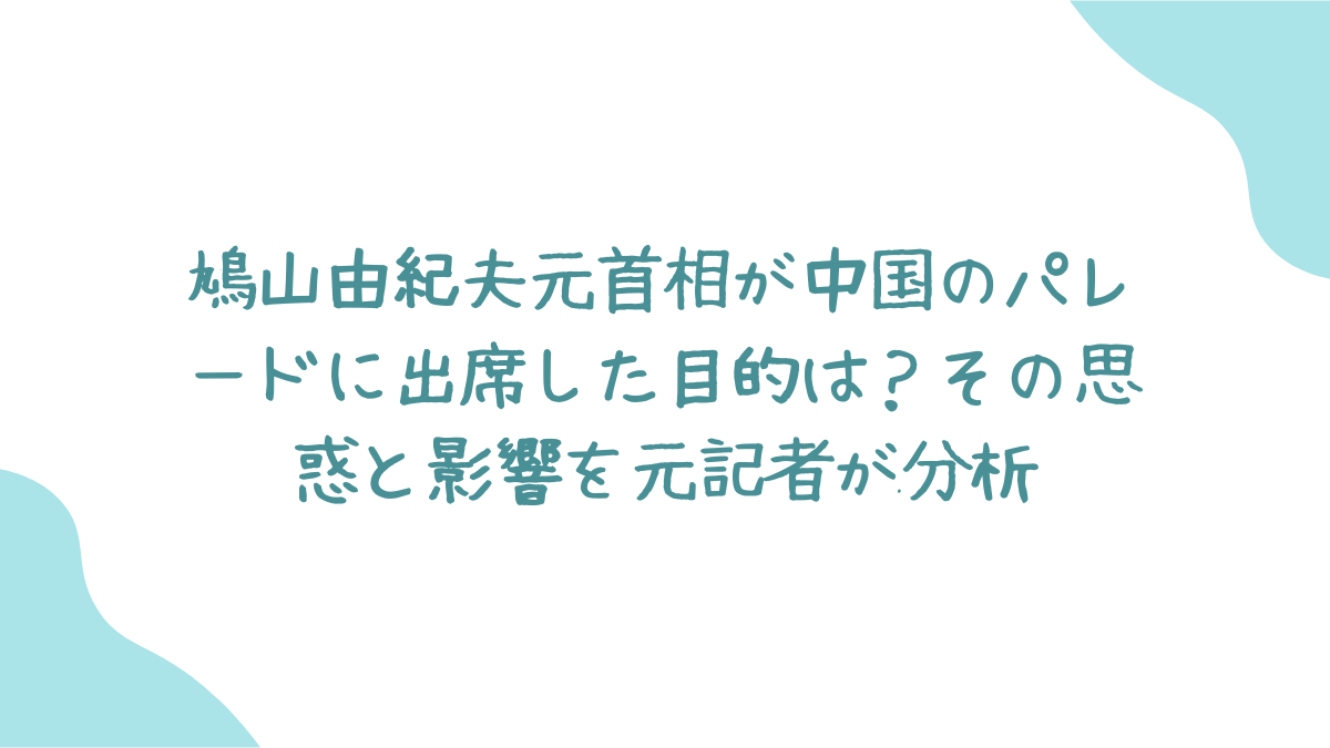 この記事では、なぜ鳩山元首相はこのタイミングでパレードに出席したのか、そして中国側は彼を招待することで何を狙っているのか。元新聞記者としての視点から、表面的な報道の奥に隠された構造的な問題を冷静に読み解き、この出来事が我々に何を問いかけているのかを深く考察していきます。