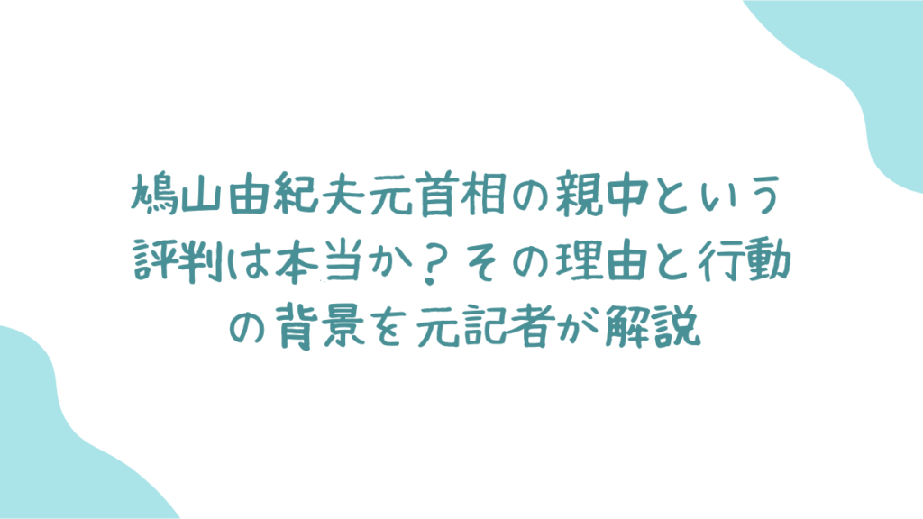 「鳩山由紀夫元首相は親中だ」。こうした評判を耳にする機会は少なくありません。南京での謝罪や中国の軍事パレード出席など、彼の行動は度々、国内外で大きな議論を巻き起こしてきました。しかし、私たちは彼を単に「親中」というレッテルで片付けてしまってよいのでしょうか。