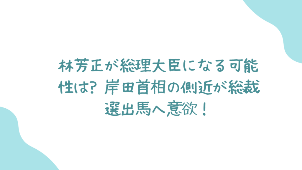 みなさん、こんにちは! 政界に新たな動きが出てきているのをご存知ですか? そう、自民党の実力者として知られる林芳正官房長官が、総裁選への出馬を検討しているんです!