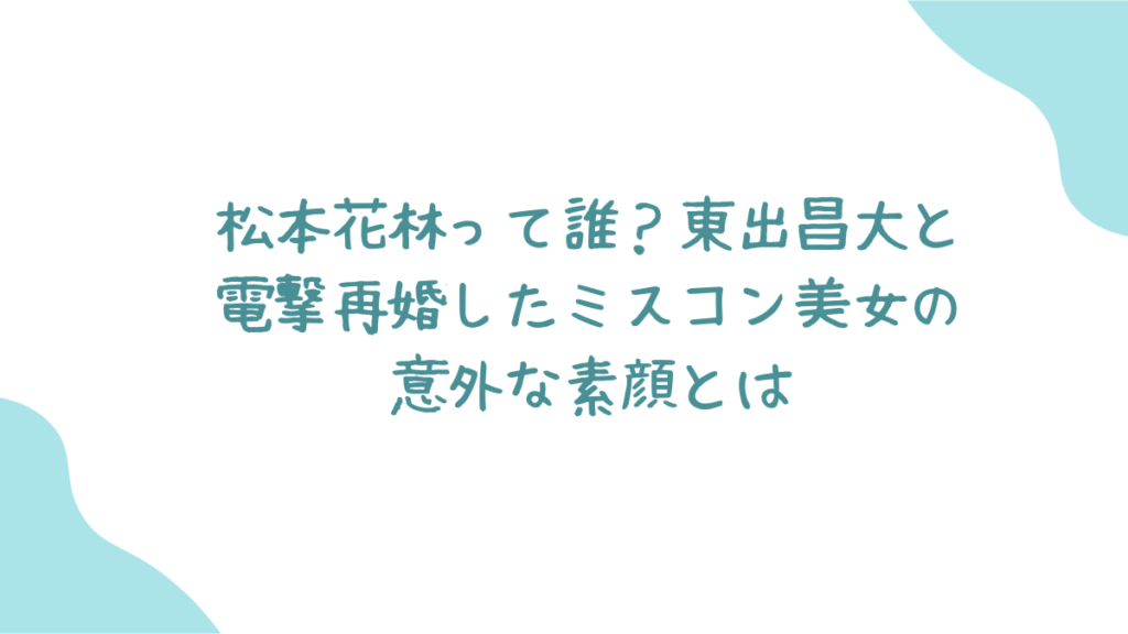 ミスコン準グランプリの松本花林の素顔や、2人の馴れ初め、世間の反応まで徹底解説。東出の人生観の変化と、新たな家族の未来に注目が集まる。