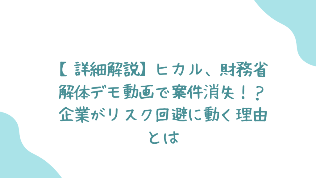 ヒカルさんが公開した「財務省解体デモ」に関する動画が、SNSを中心に大きな反響を呼んでいます。しかし、同時に企業案件がキャンセルされる事態にも発展しました。なぜこの動画が問題視されたのか? 企業がリスクを恐れた背景とは? 詳しく解説していきます。