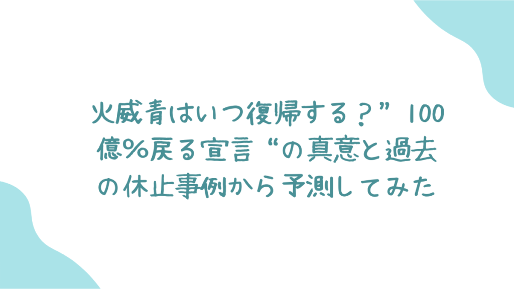 本記事では、火威青さんの活動休止の背景から復帰時期の予測、そして過去のホロメンたちの事例まで、ファンの気になる情報をわかりやすく解説していきます。
