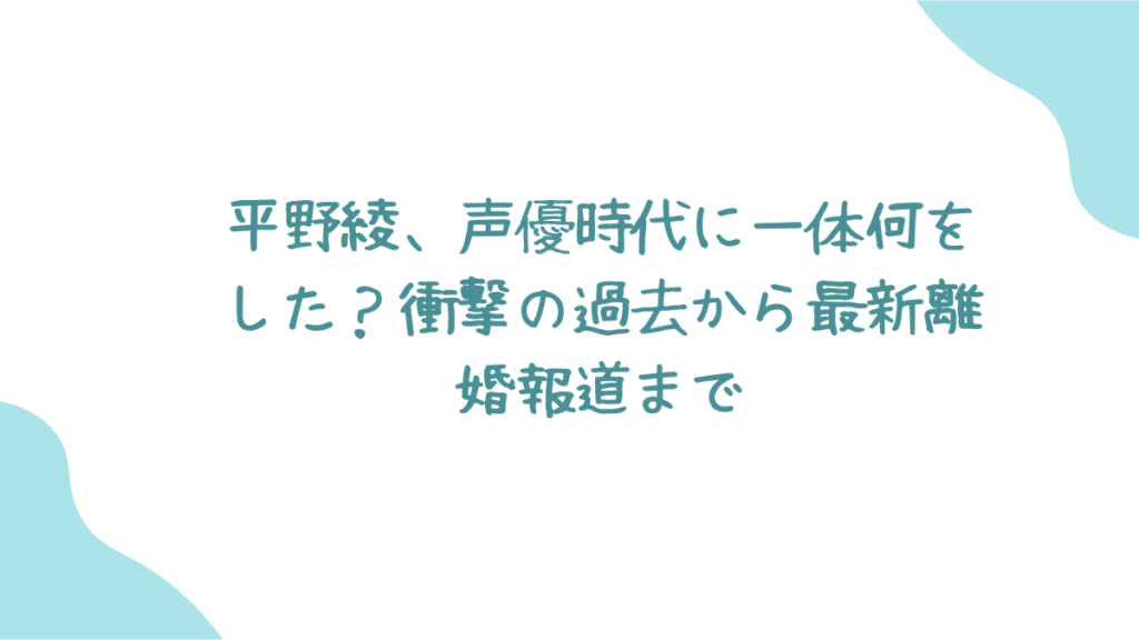 しかし、そんな彼女のキャリアに突如として暗い影が差し始めます。今回は、平野綾が声優時代に起こした騒動から、最新の離婚報道まで、彼女の波乱万丈な人生を振り返ります。