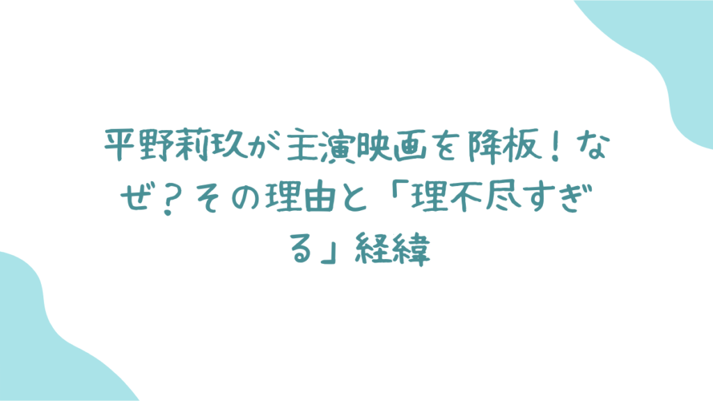 本当にその通りだよね!平野莉玖が主演映画を降板した理由はなぜか、その答えは制作側のあまりに理不尽な対応にあったってことみたい…。