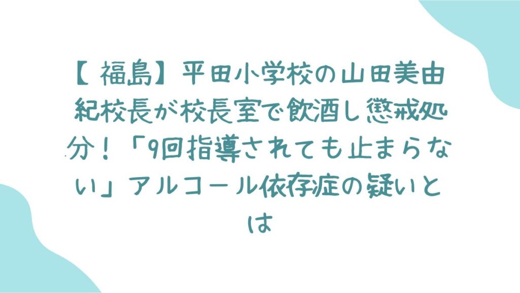 教育現場のトップにあるまじき不祥事に、保護者や地域住民からは怒りと呆れの声が上がっています。しかし、その裏で浮き彫りになったのは「周囲が何度も注意したのに止められなかった」という病的な実態でした。なぜこれほど事態が悪化するまで放置されたのか、アルコール依存症の可能性も含めて事実関係をまとめます。