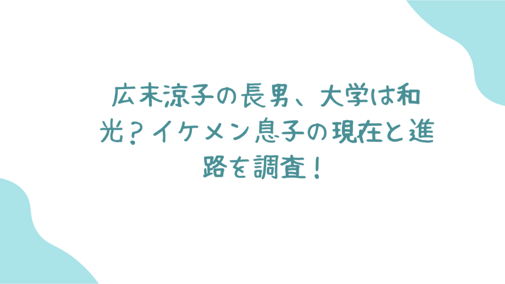 今回は、広末涼子さんの長男・宏志くんについて、気になる大学のことから、留学経験、そしてイケメンすぎる素顔まで、いろいろとまとめてみました!