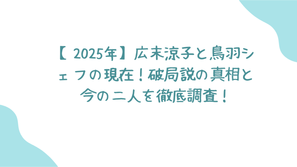 実際、2024年の年明けには「広末涼子、鳥羽シェフと年内に結婚へ!」っていうスクープ報道も出たんだよね!💒