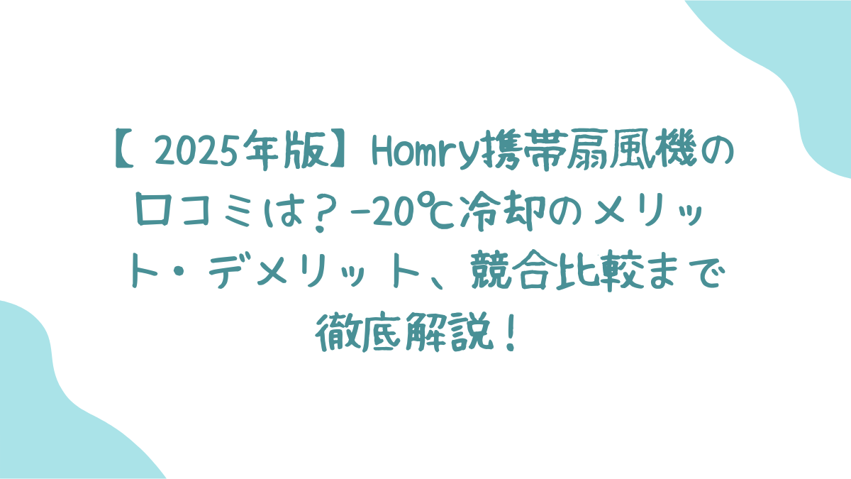 本記事では、このHomry携帯扇風機について、ネット上の口コミや評判を徹底的に分析。実際のメリットやデメリット、少し気になるメーカー情報から競合製品との比較まで、購入前に知りたい情報を網羅的に解説していきます。