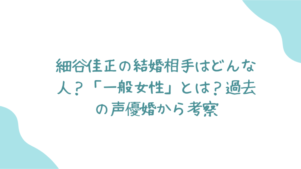 細谷佳正さんの結婚相手は「一般の方」と発表されましたが、これは 声優業界では珍しいことではありません。なぜ多くの声優が一般人と結婚する傾向にあるのか、過去の事例を交えながら考察していきます。
