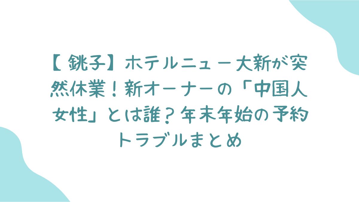 千葉県銚子市の老舗宿泊施設「ホテルニュー大新」が、書き入れ時である年末年始を目前に突然連絡が取れなくなり、事実上の休業状態に陥っていることが判明しました。