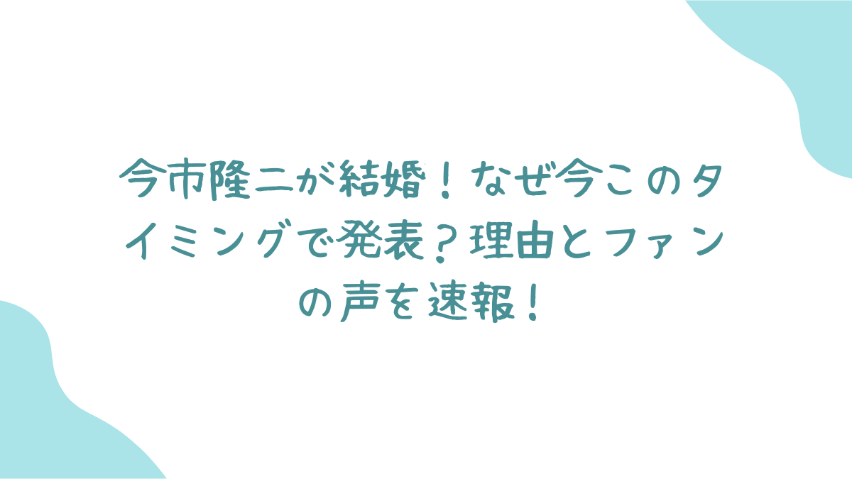 本当にびっくりだよね…!ファンとしては、復帰を待っていた矢先の出来事。気になるのは、今市隆二くんの結婚、なぜ今このタイミングで発表したのかってこと。調べてみたら、そこには色々複雑な事情があったみたい…🤔