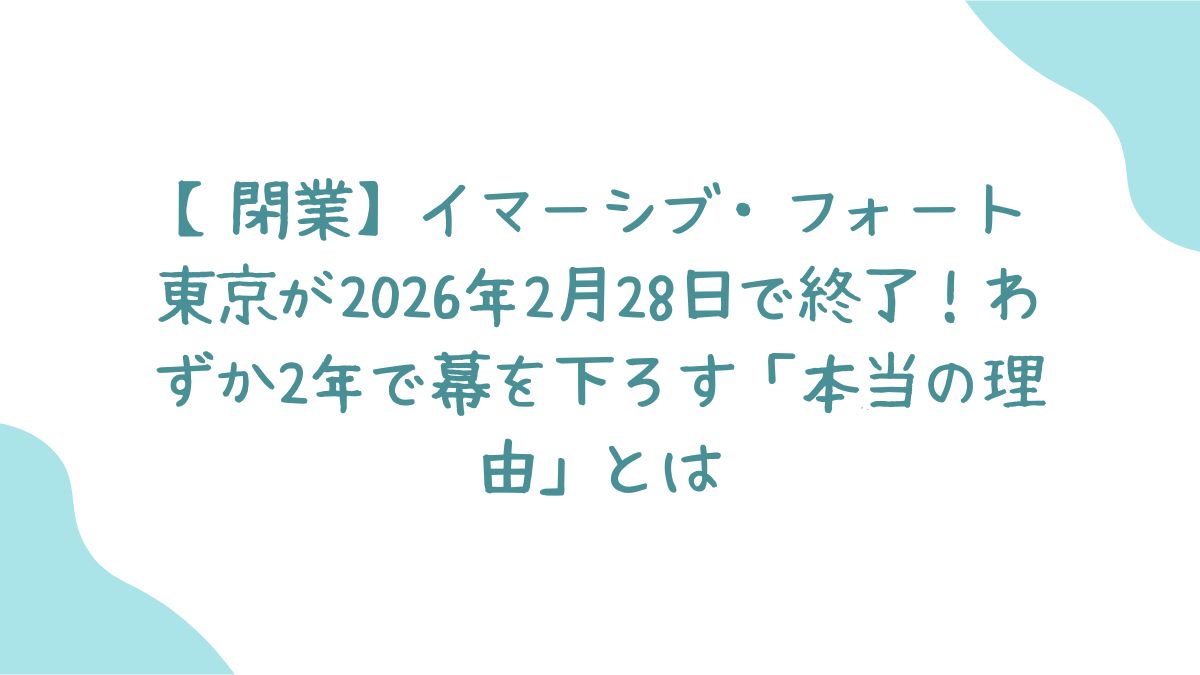 - イマーシブ・フォート東京は2026年2月28日で完全に閉業する。