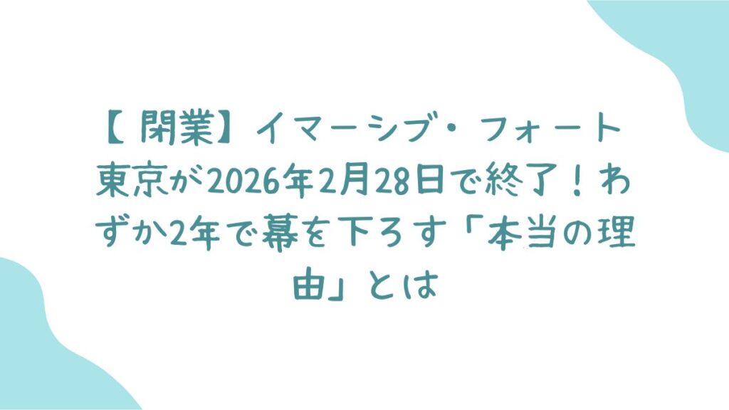 2025年12月25日、テーマパーク業界に衝撃的なニュースが走りました。東京・お台場にある世界初の没入型テーマパーク「イマーシブ・フォート東京」が、2026年2月28日(土)をもって営業を終了すると発表されたのです。