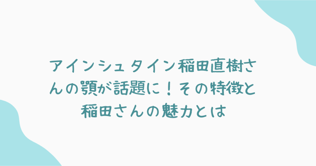 今日はお笑いコンビ「アインシュタイン」の稲田直樹さんの顎についてお話しします。稲田さんの顎は一度見たら忘れられないほど特徴的で、そのユニークな形が多くの人々に注目されています。この顎がどのように話題になっているのか、彼の魅力やファンの反応も交えて詳しく紹介します。稲田さんはその外見だけでなく、明るくポジティブな性格で多くの人を魅了しています。さっそく彼の顎にまつわるエピソードや、コンビ「アインシュタイン」としての活動を見ていきましょう!
