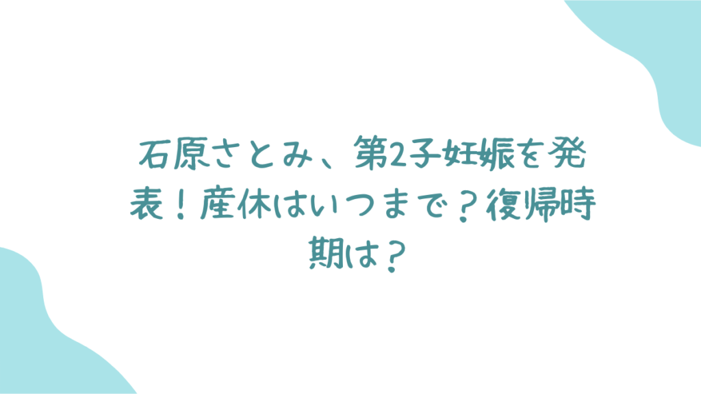 そこで今回は、石原さとみさんの産休・育休スケジュールを予想 し、