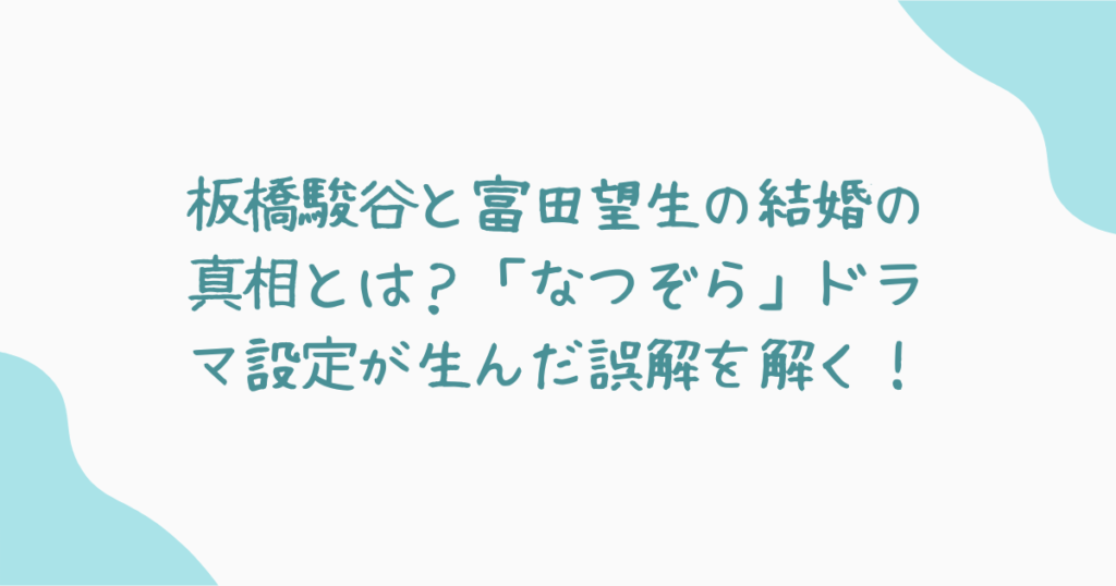 「板橋駿谷 富田望生 結婚」というキーワードで検索すると、二人が実際に結婚しているような印象を受けるかもしれません。