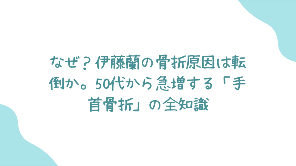 なぜ50代から骨折は急増するのか?その背景にあるものは?この記事を読めば、あなたの「健康」に対する見方が、少し変わるはずです。まずは事実確認として、伊藤蘭さんのライブ中止に関する最新情報はこちらの記事で詳しく解説しています。