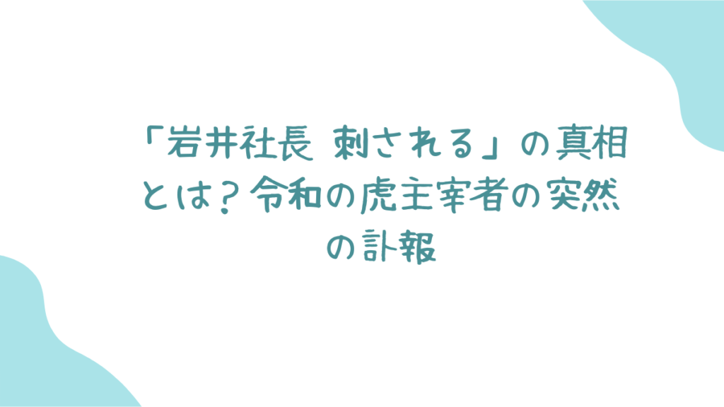 しかし、岩井社長の名前で検索すると、なぜか「刺される」というキーワードが表示されるという不可解な現象が起きています。この謎めいた状況の真相と、岩井社長の突然の訃報について詳しく見ていきましょう。