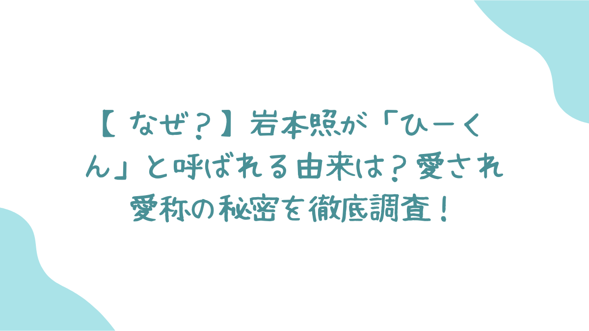 この記事では、岩本照くんの愛称「ひーくん」の由来について、メンバーからのいろんな呼び方も含めて徹底的にリサーチしてみました!さっそく見ていこー!✨