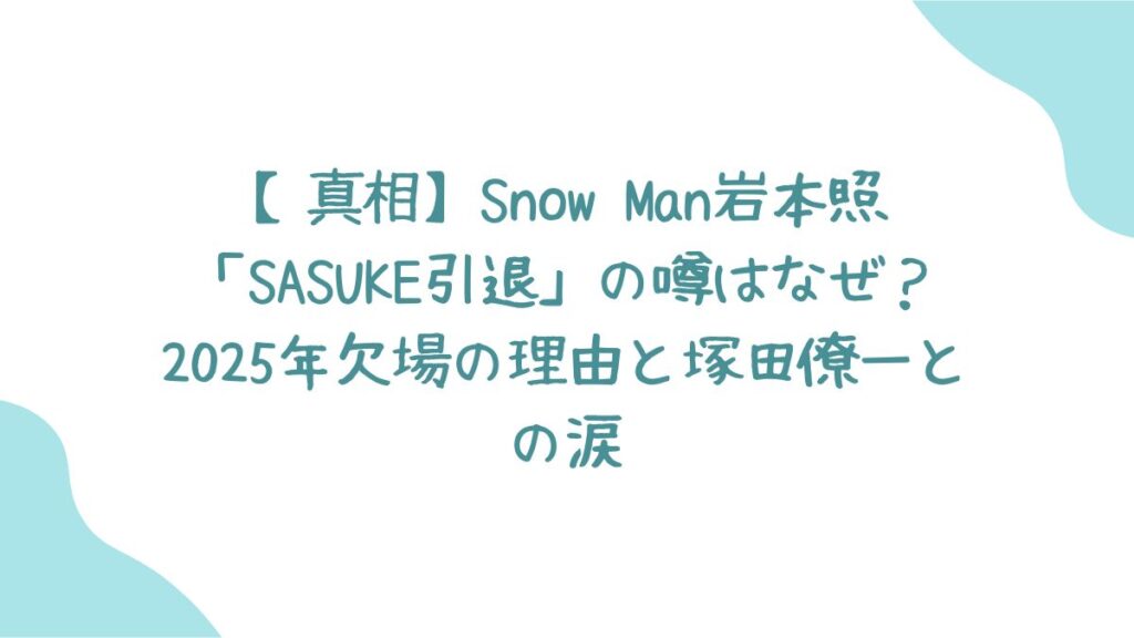 2025年末に放送された『SASUKE2025 ~第43回大会~』。Snow Manのリーダーであり、SASUKEの常連でもある岩本照(ひかる)さんの姿がスタート台になかったことから、インターネット上では「引退説」や「重病説」などの憶測が飛び交っています。