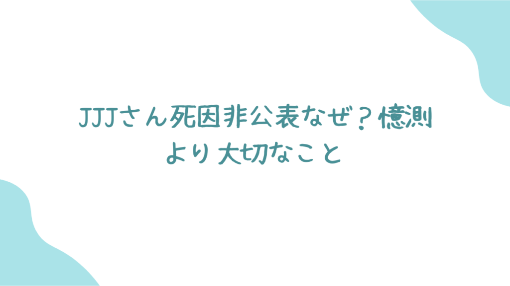 この記事では、なぜJJJさんの死因が公表されないのか、その背景にある考えられる理由を丁寧に読み解いていきます。また、つい気になってしまう私たちの心理や、ネットで憶測が広がってしまう仕組み、そして有名人のプライバシーの問題についても、一緒に考えていきたいと思います。